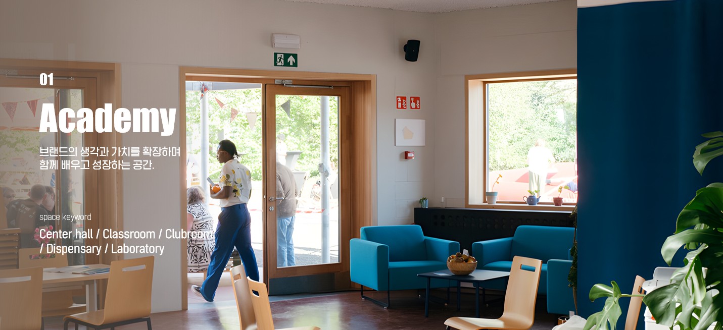 브랜드를 위해 교육하고, 배우고, 자유롭게 토론하는 공간들이 상상됐습니다.